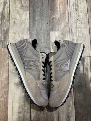 Scarpe Saucony Jazz in tonalità beige e grigio. Un classico intramontabile per il tempo libero. - Tomaia in tessuto mesh e suede. - Dettagli in materiale sintetico. - Suola in gomma resistente.