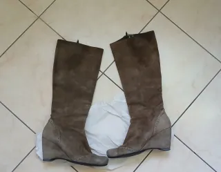 Eleganti stivali da donna in camoscio con zeppa. Perfetti per completare ogni outfit. - Materiale: camoscio - Dettagli traforati - Chiusura con zip