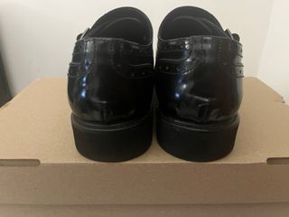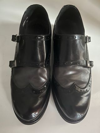 Scarpe donna in simil stile inglese. Tomaia in pelle lucida e opaca.Tg 37