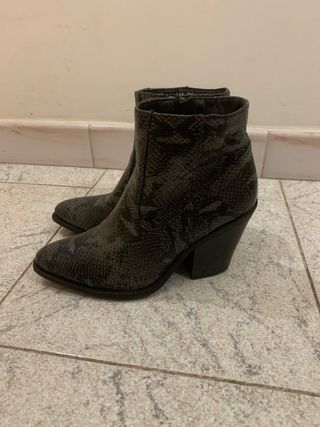 Stivaletti alla caviglia con un audace motivo pitonato. Il tacco alto dona slancio alla figura. - Design a punta. - Dettagli elastici laterali. - Tirante posteriore per facilitare la calzata.