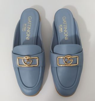 Mocassini Gattinoni donna blu e oro