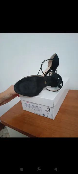 Eleganti scarpe da tango, perfette per la pista da ballo. Mai indossate. - Design con cinturino doppio alla caviglia. - Dettagli glitterati sulla tomaia. - Tacco sottile e slanciato.