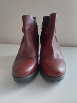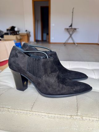 Eleganti stivaletti da donna. - Materiale scamosciato. - Tacco largo e squadrato. - Punta affusolata. - Inserti elastici laterali.