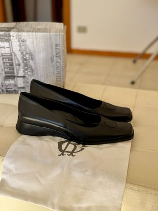 Eleganti décolleté René Caovilla. - Modello a punta quadrata. - Tacco a zeppa. - Dettaglio logo sul davanti.