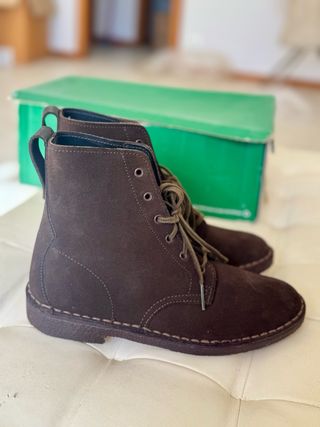 Scarponcini Clarks da donna in camoscio marrone, nuovi. - Materiale scamosciato. - Design stringato. - Suola in caucciù