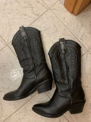 Stivaletti texani da donna in pelle. - Design classico western. - Dettagli ricamati sul gambale. - Tacco comodo. altezza gambale 31 cm altezza tacco 4,5 cm pelle esternamente ecopelle internamente come si vede in foto leggermente rovinato