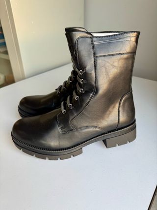 Nuovi scarponcini da donna. - Modello stringato. - Tomaia in pelle scamosciata. - Suola in gomma.