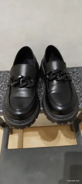 Eleganti mocassini da donna con un dettaglio di catena sulla tomaia. Perfetti per completare ogni outfit. - Materiale: ecopelle - Dettaglio: catena frontale - Suola: carrarmato n 42 nuove mai indossate