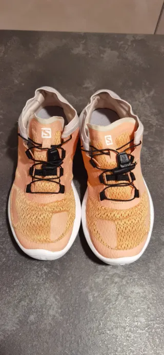 Sneakers da donna in colorazione arancione e bianco. Presentano un design moderno e sono perfette per l'attività sportiva. - Tomaia in mesh traspirante. - Sistema di allacciatura rapida. - Suola in gomma per un'ottima aderenza.