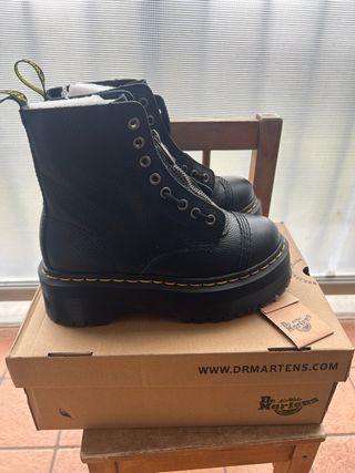 Stivali Dr. Martens neri con un design audace e una zip frontale. - Tomaia in pelle martellata. - Zip frontale per una facile chiusura. - Suola platform spessa. - Dettagli con cuciture gialle. - Tirante posteriore con logo.