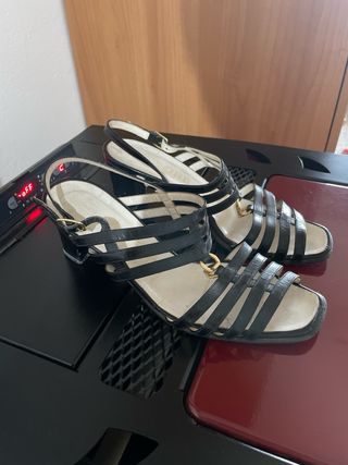 Sandali neri con tacco e plateau
