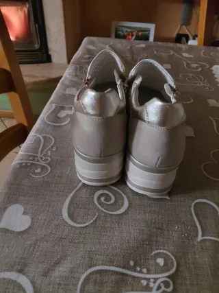 Vendo scarpe ginnastica n. 38 unisex usate solo in palestra da come si vede la soletta sotto ha delle macchie probabilmente dovute alla pavimentazione della palestra sono lavate ma le macchine non sono adate via, sono solo sotto quindi una volta indossate non si vede nulla per il resto sono ancora molto belle