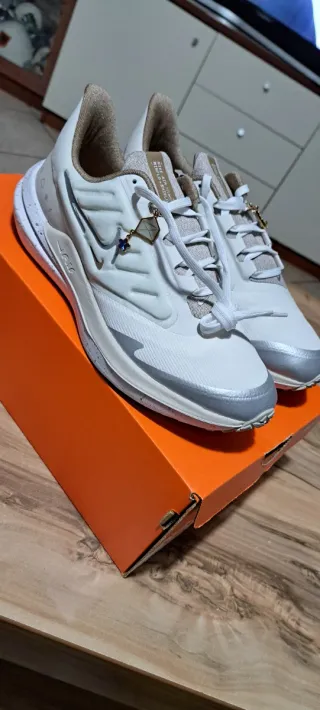 Scarpe Nike Air in color bianco e argento. Design moderno e dettagli curati. - Logo Nike. - Dettagli metallici. - Suola resistente.