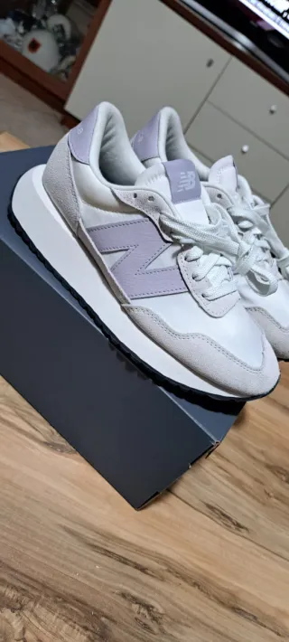 Sneakers New Balance da donna in una combinazione di colori viola e bianco. Design moderno e confortevole. - Toma in pelle scamosciata e tessuto. - Dettagli con logo N laterale. - Suola spessa e ammortizzata.