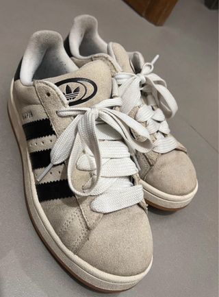 Scarpe Adidas modello Campus. - Tomaia in scamosciato beige. - Dettagli a contrasto neri. - Iconiche tre strisce Adidas. - Logo CAMPUS sul lato.