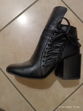 Eleganti stivaletti da donna con un design moderno,estremamente sono in buone condizioni all interno sono rovinate come mostrato in ultime foto,condizioni discrete. - Materiale: similpelle - Colore: nero - Chiusura laterale con zip - Tacco largo e plateau - Punta arrotondata