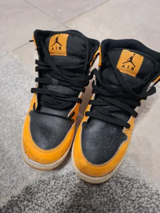 Scarpe alte Jordan Air in pelle. - Tomaia in pelle nera e inserti arancioni. - Logo Air Jordan sulla linguetta. - Suola in gomma.