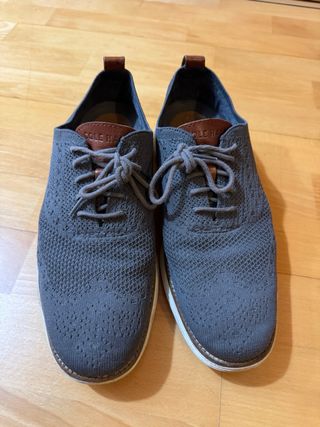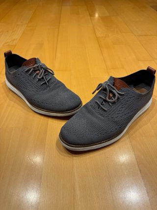 Scarpe da cerimonia da uomo della marca Cole Haan. Design moderno in tessuto a maglia. Dettaglio in pelle sul tallone e sulla linguetta. Lacciuoli per la regolazione. Suola in gomma. Colore grigio.