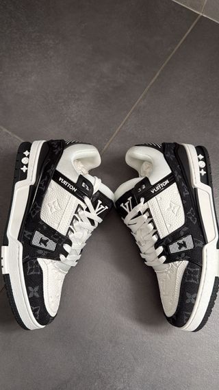 Eleganti scarpe Louis Vuitton. - Design moderno. - Dettagli con logo LV e numero 1894. - Inserti floreali bianchi. - Logo VUITTON sulla linguetta.