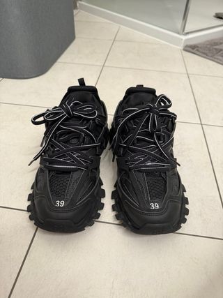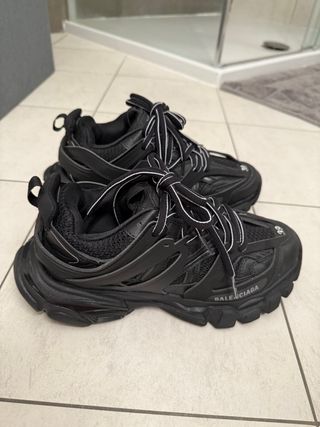 Sneakers Balenciaga modello Track. - Tomaia in mesh e pelle. - Suola spessa e ammortizzata. - Logo Balenciaga sul lato.