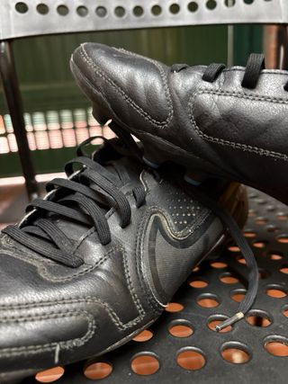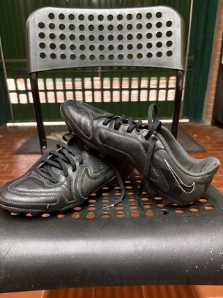 Scarpe da calcio Nike Tiempo in colore nero. - Tomaia in pelle sintetica per un tocco morbido. - Suola in gomma per una presa ottimale. - Design classico e confortevole. Tacchetti in plastica a 13