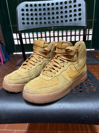 Scarpe alte Nike Air Force 1 in tonalità beige e marrone. - Tomaia in suede. - Swoosh laterale a contrasto. - Suola in gomma. - Chiusura con lacci.