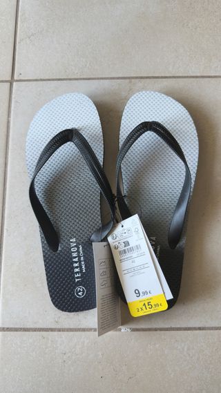 Coppia di infradito Terranova, taglia 42. Sono di colore nero e bianco. Le infradito sono nuove, con ancora il cartellino. - Perfette per l'estate - Design semplice ed elegante - Materiale comodo e leggero