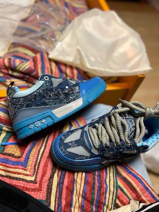 Sneakers Louis Vuitton modello Skate. Dettagli in Swarovski e design unico. - Colore: Blu e argento - Materiale: Tessuto e dettagli Swarovski