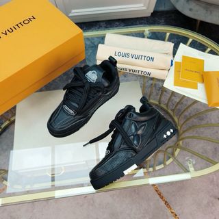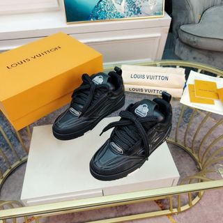 Vendo un paio di scarpe da ginnastica Louis Vuitton. Sono nere e in ottime condizioni. - Modello: Scarpe skate - Materiale: Pelle e tessuto - Dettagli: Logo LV in rilievo