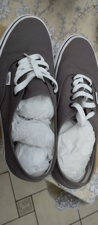 Sneakers Vans unisex in un elegante colore grigio. Perfette per un look casual e comodo. - Tomaia in tela resistente. - Chiusura con lacci bianchi. - Suola in gomma vulcanizzata. - Logo Vans laterale.