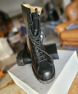 Anfibio militare in pelle. - Modello alto. - Lacci neri. - Suola spessa.