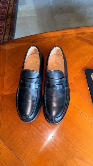 Mocassini da uomo Church's NEVADA in pelle spazzolata nera, taglia UK 7 - IT 41 * Fodera e sottopiede in pelle con logo Church's dorato * Suola in gomma con logo Dainite * Made in England * Indossate meno di 10 volte * Suole personalizzate dalla famosa calzoleria ALVISI di Milano, che in esclusiva effettua la risuolatura di scarpe Church's, con suole Dainite (celebri per la loro durabilitá), che rappresentano uno standard d'eccellenza per le calzature formali e da uomo di alta qualità, prodotte nel Regno Unito. -Condizioni molto buone, disponibile per qualsiasi domanda. -Prezzo trattabile, Vendo perché mi vanno un po' strette