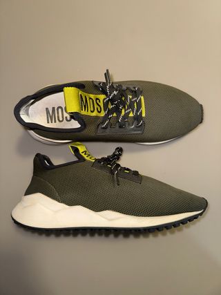 Sneakers Moschino dal design moderno e accattivante. - Tomaia in tessuto tecnico traspirante. - Dettagli con logo Moschino a contrasto. - Suola in gomma resistente.