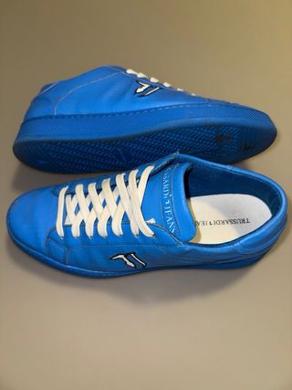 Scarpe da ginnastica Trussardi di colore blu. - Logo distintivo sul lato. - Lacci bianchi. - Tomaia traforata.