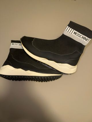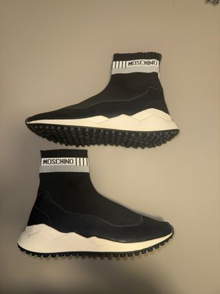 Sneakers Moschino modello Calza in nero e bianco. - Design a calzino. - Dettagli a contrasto sulla suola.