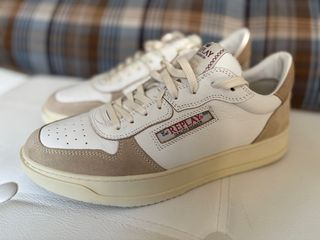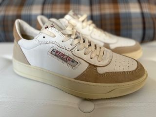 Sneakers Replay in pelle, un mix di bianco e beige. Indossate 2/3 volte, pari al nuovo - Design classico. - Dettagli in camoscio. - Logo Replay sul lato. - Pelle molto bella con effetto vintage - Molto comode - Interno spugnato - Taglia 42 (equivale ad un 42.5 di nike)