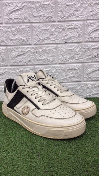 Scarpe da uomo con un design moderno e dettagli unici. - Tomaia in pelle bianca. - Inserti neri a contrasto. - Suola spessa e resistente. - Logo distintivo sulla linguetta.