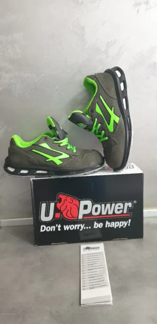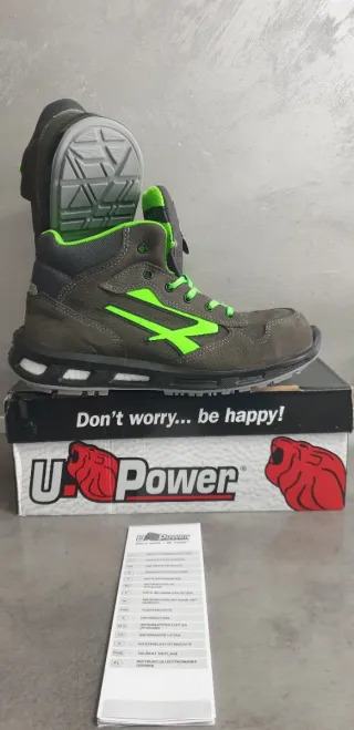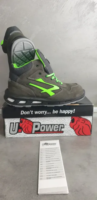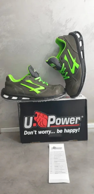 Scarpe da lavoro U Power, modello antinfortunistico. - Taglia 43 - Colore grigio e verde - Certificazione S3