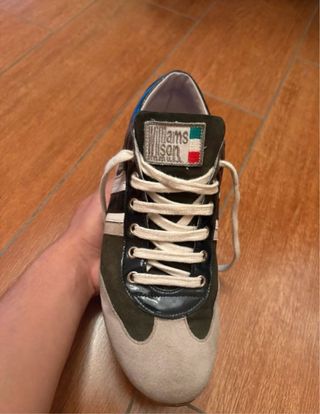 🇮🇹 vendo scarpe Williams Wilson in suede, taglia 42, ma calzano anche 42.5/43 . colore verde grigio bianco. tutto made in italy. condizioni eccellenti. con scatolo originale williams wilson 🇬🇧 i sell this pair of Williams Wilson suede shoes, size 7 Uk, 9.5 us, 42 eur. Green, gray, white color. All made in Italy. Excellent condition. with the original williams wilson box.