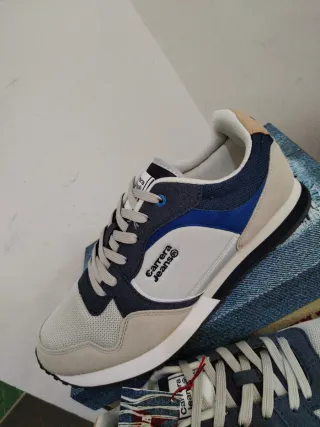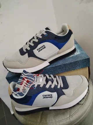 Sneakers Carrera Jeans da uomo, taglia 44. - Tomaia in mesh e camoscio. - Dettagli in blu e beige. - Logo Carrera Jeans sul lato.
