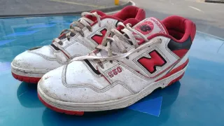Scarpe da ginnastica New Balance modello 550. - Design iconico. - Dettagli rossi e bianchi. - Logo N laterale.