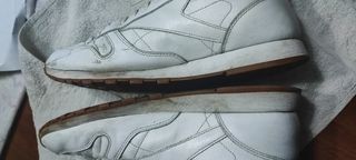 Vendo un paio di scarpe da ginnastica Reebok Classic Leather, bianche, numero 42. Sono in buone condizioni, ma presentano qualche segno di usura. Lunghezza suola 30 - Pelle bianca leggermente ingiallita - Suola in gomma - Perfette per un look casual