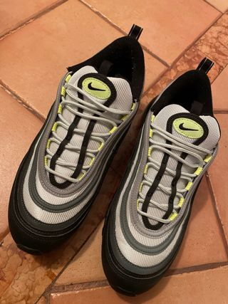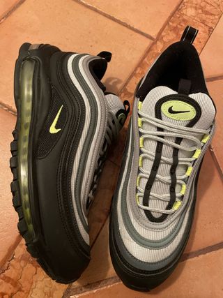Iconiche Nike Air Max 97 con dettagli neon. - Design ondulato distintivo. - Unità Air Max visibile lungo tutta l'intersuola. - Tomaia in mesh e materiali sintetici.