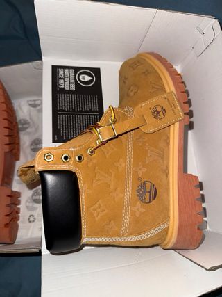 Stivali Timberland con un design esclusivo in collaborazione con Louis Vuitton. - Motivo monogram LV inciso sulla tomaia. - Dettagli neri sul colletto. - Suola robusta in gomma. Poco trattabile Rep di alta qualità