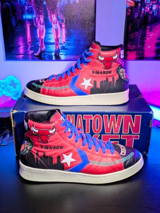 Converse x Chinatown Market x NBA Garnet/ Black/ Hyper Royal EU 43 US M 9.5 US W 11 UK 8.5 Ottime condizioni come da foto, con scatola originale