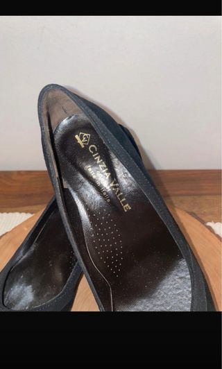 Eleganti scarpe in pelle del marchio Pitillos. Tacco 8 cm, punta 1 cm, ho applicato un tacco adesivo che ho rimosso, visibile nelle foto. Colore nero. Design con elastico laterale. Puntale con microfori.