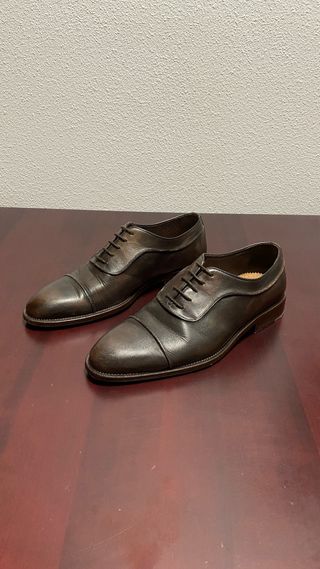 Eleganti scarpe stringate in pelle. La pelle è praticamente intatta mentre la suola è leggermente consumata - Modello inglesina. - Dettagli traforati.