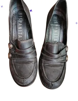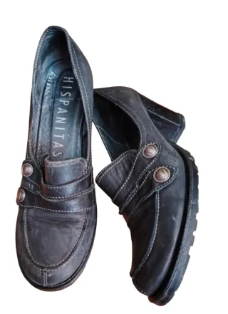Eleganti scarpe col tacco del marchio Hispanitas, realizzate in pelle. Design tipo mocassino con dettagli di fibbie. Tacco spesso per una maggiore comodità. Cuciture decorative. Interno con logo del marchio.