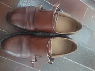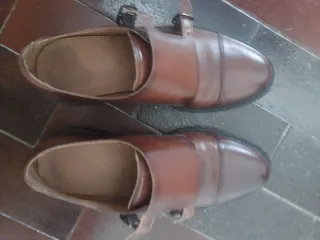 Eleganti scarpe da uomo in pelle marrone. - Modello zara monk strap con doppia fibbia. - Suola in cuoio. - Finitura lucida.