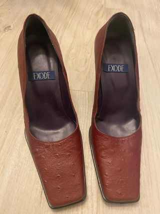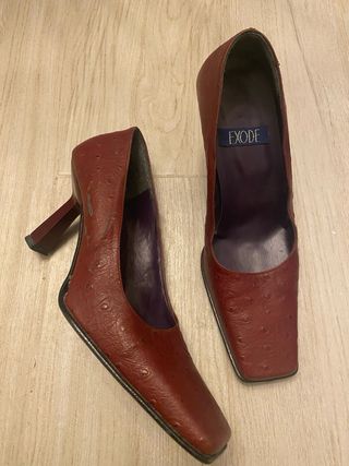 Eleganti scarpe décolleté con tacco, in un raffinato color bordeaux. - Materiale effetto martellato. - Punta quadrata. - Logo EXODE sulla soletta interna. Altezza tacco 7cm